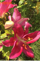 Несмотря на то, что лилия Гран Туризмо выведена в Голландии, она считается традиционным восточным сортом. Высокая и рослая, она отличается простыми формами и необычными соцветиями. С конца июля и до середины августа на ее цветоносах покачиваются огромные цветы, достигающие 20 см в диаметре и смотрящие прямо в лицо жаркому солнцу. Небесное светило не в силах сделать бледнее их насыщенную красно-розовую расцветку, выжечь редкий темный крап или обесцветить отличительные отметины зелено-желтого оттенка. Весь период цветения Гран Туризмо сохраняет невозмутимое спокойствие и чувство собственного достоинства, как и полагается восточной женщине.