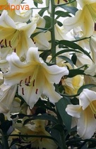 Conca d'Or Оригинатор Gebr. Vletter & Den Haan, 2000 г Цветок-завоеватель!А еще гигант, истинный представитель Востока и просто впечатляющий сорт! Увидев его в продаже, даже не думайте пройти мимо, ведь следующая возможность может выпасть нескоро. Уже сейчас вы можете стать владельцем большой восточной лилии с поздним периодом цветения, изысканным пряным ароматом и широко распахнутыми цветками, смотрящими в небо. Исключительно большие цветы с волнистыми молочно-белыми краями без тени стеснения демонстрируют свое светло-зеленое горло, темные контрастные тычинки, деликатную бледно-желтую окраску в целом. Стойкость оттенка лилии Конкадор поражает опытных садоводов, но секрет прост: сорт не желает уступать растениям-старожилам и всячески добивается расположения своего обладателя.Высота растения: 150 см Размер цветка: до 27.5 см