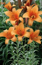 Трубчатые цветки лилии African Queen (Африкан Квин)абрикосово-оранжевого цвета с фиолетово-коричневыми внешними мазками, обладают очень насыщенным ароматом. Соцветие кистевидное, состоит из 3-6 цветков.Лилия African Queen (Африкан Квин) предпочтет солнечный участок и нуждается в хорошем дренаже и слабокислой почве. Если кислотность повышена, то добавьте древесную золу, мел или негашеную известь.