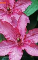 Hania' (Ханя), S Marczynski , Польша, 1993-2000, гибрид 'Rouge Cardinal' x unknown Кустарниковая лиана длиной до 2 м. Польский сорт, награжден бронзовой медалью на выставке «Plantarium 2002» в Голландии. С великолепными крупными, двуцветными бархатистыми цветками: искристо-красными с розовой каймой и контрастными золотистыми тычинками в середине. Цветки до 15 см в диаметре с 6 лепестками до 7 см длиной и 3,5 см шириной. Молодая листва имеет бордовый оттенок. Группа обрезки 2. Цветёт долго и обильно, с конца мая до августа, с перерывом в июле.