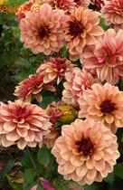 Декоративные георгины (Decorative Dahlia) - это самый представительный, многочисленный и разнообразный класс георгин. Полностью махровый цветок, диаметром от 10 до 25 см, имеет плоские лепестки (язычковые цветки), слегка закрученные и отогнутые к стеблю, что делает его необыкновенно пышным. Средняя высота куста декоративных георгин — 90—150 см, хотя есть сорта, достигающие двух (а иногда и более) метра. Основное назначение — для групповых посадок или срезки.