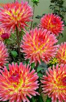 Кактусовые георгины (Cactus Dahlia) - свое название получили благодаря оригинальной форме соцветий. В последнее время в группе кактусовых георгин становится все больше сортов с глубоко рассеченными кончиками лепестков, из-за чего соцветия кажутся как будто взъерошенными чьей-то рукой. Соцветия у кактусовых георгин довольно крупные —15—18 см, полностью махровые, состоящие из узких свернутых на большей части длины лепестков (язычковых цветов), расходящихся во все направления от центра цветка. Цветение обильное. Средняя высота куста кактусовых георгин - 110—140 см, отдельные сорта - до 150, поэтому они нуждаются в подвязывании и дополнительной опоре. Также во время вегетации желательно удаление корневой поросли. Кактусовые георгины идеально подходят как для групповых, так и одиночных посадок.