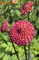 Георгины Помпонные и шаровидныеШаровидные георгины (Ball Dahlia) - довольно высокие кусты георгин этой группы во время цветения буквально усыпаны симпатичными цветками диаметром 10-16 см. В зависимости от сорта на шаровидных георгинах могут одновременно распускаться до 25 цветков, каждый из которых благодаря своим плотно упакованным свернутым лепесткам (язычковым цветкам) похож на слегка сплюснутый шар.Средняя высота шаровидных георгин — 80—100 см, поэтому они нуждаются в подвязывании и дополнительной опоре. Используются шаровидные георгины как в смешанных и групповых посадках, так и для срезки . Помпоновидные георгины (Pompon Dahlia) или как их еще называют помпонные георгины – во всем похожи на шаровидные георгины: такие же слегка сплюснутые шары, состоящие из плотно упакованных свернутых лепестков (язычковых цветков) и такое же обильное и непрерывное цветение. Отличаются помпонные георгины только размерами – средний диаметр цветков всего 6-7 см. Также как и шаровидные, помпоновидные георгин достаточно высокие – 80 - 100 см, поэтому они тоже нуждаются в подвязывании и дополнительной опоре. Используются помпонные георгины преимущественно для срезки, т.к. долго стоят в букетах, а также в смешанных и групповых посадках. |