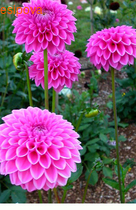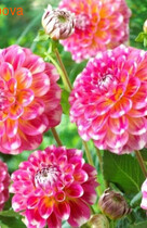 Георгины Помпонные и шаровидныеШаровидные георгины (Ball Dahlia) - довольно высокие кусты георгин этой группы во время цветения буквально усыпаны симпатичными цветками диаметром 10-16 см. В зависимости от сорта на шаровидных георгинах могут одновременно распускаться до 25 цветков, каждый из которых благодаря своим плотно упакованным свернутым лепесткам (язычковым цветкам) похож на слегка сплюснутый шар.Средняя высота шаровидных георгин — 80—100 см, поэтому они нуждаются в подвязывании и дополнительной опоре. Используются шаровидные георгины как в смешанных и групповых посадках, так и для срезки . Помпоновидные георгины (Pompon Dahlia) или как их еще называют помпонные георгины – во всем похожи на шаровидные георгины: такие же слегка сплюснутые шары, состоящие из плотно упакованных свернутых лепестков (язычковых цветков) и такое же обильное и непрерывное цветение. Отличаются помпонные георгины только размерами – средний диаметр цветков всего 6-7 см. Также как и шаровидные, помпоновидные георгин достаточно высокие – 80 - 100 см, поэтому они тоже нуждаются в подвязывании и дополнительной опоре. Используются помпонные георгины преимущественно для срезки, т.к. долго стоят в букетах, а также в смешанных и групповых посадках. |