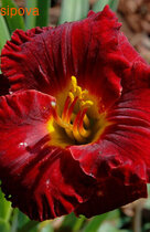 SNAGGLE TOOTH-пер.Уютные зубчики Оригинатор: Hansen-D.Год интродукции:2006 БАХРОМЧАТЫЙ!!! Темно-бордовый с желтым горлом и белой зубчатой каймой диаметром 15 см; высота растения — 95 см Тетраплоид, повторноцветущий, ароматный.