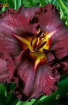 ГОФРИР. Пурпурно-черный, с желтым горлом,Н-60 cm, Ø15 cm, 7-8, более 150 цветков за сезон на трехлетнем растении