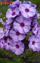 Флокс метельчатый Дракон (Phlox paniculata Drakon) 4.0; 80-90; С. Гаганов П.Г., 1958.Темно-пурпурно-фиолетовый с серыми штрихами и маленьким карминным колечком, оригинальная расцветка.Классика! Сорт настолько эффектный и оригинальный, что гармонично вписать его в цветник - почти невыполнимая задача. Серебряная "чешуя" соцветия этого флокса требует нейтрального, незаметного окружения. В начале роспуска цветок 'Дракона' глубокого пурпурно-фиолетового цвета, затем появляется едва заметная серебристая кайма, которая становится все плотнее и ярче. Контраст насыщенного тона лепестков и блестящей серебряной каймы придает всему соцветию экзотический, непривычный для флокса облик. Куст хорошо облиствлен, стебли прочные. Владельцу этого чуда приходится смиряться с несколько капризным характером 'Дракона' - сорт разрастается не спеша и неохотно размножается черенками. Срок цветения средний,
