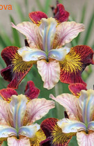 Стандарты лавандово-розовые, стайлы светло-голубые с сиреневой линией, фолы окрашиваются в зависимости от погоды, но всегда эффектно от арбузно-розовой до бронзово-розовой с желтым сигналом. по 3 бутона на стебле. Цветение: 7, ⌀ 12см, Н 70
