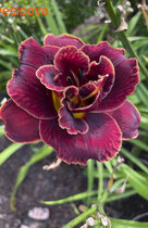 Night Embers-пер.Ночные Участники Оригинатор Stamile, 1998 г относится к группе тетраплоидных лилейников. Среднего срока цветения. Многолетнее корневищное растение 65-75 см высотой. Цветки 12-14 см в диаметре. черно-вишневог цвета с кремовой. окантовкой, махровые.