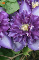Vyvyan Pennell Оригинатор : Walter Pennel, United Kingdom Год создания : 1959 Клематис (ломонос) Вивьян Пеннел - с повторным цветением за период, первое цветение с мая по июнь (цветет махровыми цветками на прошлогодних побегах), второе цветение с августа по сентябрь (цветет полумахровыми цветками на побегах текущего года). Цветение обильное и продолжительное. Растение вьющееся, высота клематиса от 2, до 3 метров, необходима садовая опора. Цветки крупные до 17 см. в диаметре, фиолетового-голубого цвета. Высадку производят на солнечной стороне, хорошо защищенной от ветра. Группа обрезки: II (слабая). Может плестись по натуральным опорам: деревьям, кустарникам