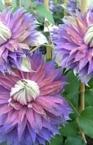 Клематис 'Тирислунд' - крупноцветковый ранний сорт.Потрясающий сорт с крупными цветками сиренево-голубого оттенка и с более светлыми продольными полосками посередине лепестков. Контрастные желтые пыльники на кремовых тычиночных нитях.Размер цветка от 10 до 15 см., образует 8 чашелистиков в одиночной форме, лепестки у основания заходят один на другой, вверх смотрящие с волнистыми краями и заостренными кончиками.Обильно цветет махровыми и полумахровыми цветками на побегах прошлого года с мая по июнь, а после обрезки повторное обильное цветение полумахровыми и чаще одиночными цветками на побегах текущего года c конца августа по сентябрь.К условиям освещения нетребователен. За опоры цепляется листовыми черешками. Особенно хорош для выращивания у ограждений, беседок, пергол, решёток. Может карабкаться по небольшим деревьям и кустарникам. Прекрасно подходит для выращивания в больших контейнерах на террасах и балконах.Группа: Patens Group Оригинатор Ф. Хансен, Дания.Обрезка: 2 группа (слабая).