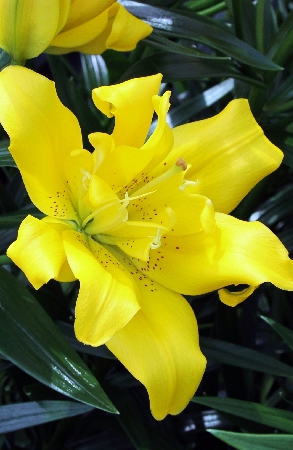 Sundew Красота не требует жертв, когда речь заходит о посадке лилий Sundew (Сандью). Простые в агротехнике и уходе, они великолепно вписываются в любую цветочную композицию, разве это не отличный повод посадить данный сорт лилий у себя на даче?!Позолоченные цветки лилии Сандью притягивают к себе взоры прохожих, словно это драгоценность. Бутоны один за одним вспыхивают на кусту, превращаясь в махровые цветки крупного размера. Диаметр каждого не менее 16-18 см. Лепестки имеют лёгкое гофрирование по краям, середина солнечного цветка покрыта винными брызгами. Стебель крепкий, прямостоячий, высотой 110-120 см с многочисленной мясистой темно-зелёной листвой.