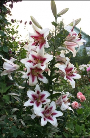 Контрастная лилия Altari относится к классу ОТ-гибрид, способна поразить каждого своей яркостью, формой и размерами. Период цветения лилии приходится на конец июля - начало августа, расцветая воронковидными, огромными цветами двойной окраски лилия Алтари поселяется в сердца каждого. Края лепестков этой красавицы бело-кремового оттенка, от основания до середины лепестка красно-бордового оттенка. Края лепестков слегка волнистые, кончики загнутые, цветок у лилии огромный, диаметром до 25 см, с тонким, сладким ароматом. На одном стебле образуется до 10 бутонов, продолжительность цветения 2-3 недели.На прочном стебле поочередно расположены листья темно-зеленого оттенка, высота лилии Алтари достигает 110-120 см. Широко используется лилия этого сорта для срезки, выгонки, озеленения.