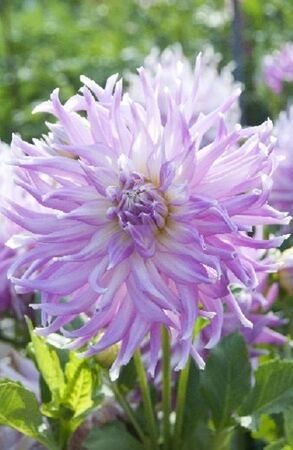 Георгина Мингус Грегори – изобретение американских селекционеров, представленное миру в 1997 году. Ее решили популяризировать за счет необычных соцветий-корзинок и высокого роста кустов, выдающих совершенные прямые побеги. Они могут быть основой для букетов и флористических композиций, что автоматически делает сорт привлекательным в отношении коммерческого выращивания. Сейчас георгина Mingus Gregory часто встречается не только в парниках, но и в обычных садах, где выделяется крупными кактусовидными цветками диаметром 22 см. Туго свернутые лепестки напоминают колючие иголки. На ощупь же они мягкие и нежные, как и на окрас. Основную лавандовую гамму разбавляют включения лиловых широких штрихов и белоснежного основания. В самой глубине цветков застенчиво скрывается лаймово-желтый оттенок, делающий цветение еще более очаровательным и оригинальным.