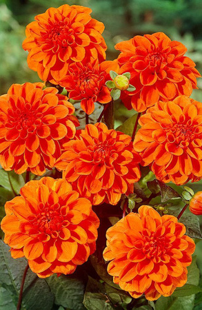 Георгина Оранж Наггет (Orange Nugget) – очаровательный многолетний карликовый сорт, выведенный в США в 1964г. Цветок полностью соответствует своему красивому названию, в переводе «Апельсиновый самородок» - чудесный ярко-оранжевый окрас привлекает взгляды прохожих и дарит прекрасное настроение! Растение формирует небольшой куст, высотой около 50-70см. с крепкими стеблями, листовая пластина темно-зеленого оттенка, зазубрена по краям. Махровые цветоносы (до 11см. в диаметре) полностью покрывают куст. Многочисленные лепестки овальной формы, немного скрученные – за счет чего цветок приобретает праздничный вид. Цветение длительное, в поздние сроки – с середины лета и вплоть до заморозков.