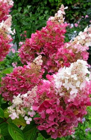 Один из лучших сортов метельчатой гортензии, выведенный в 2003 году в Бельгии. Отличительной особенностью этого сорта являются пурпурная осенняя окраска цветов и листьев, а также очень прочные побеги, которые прекрасно держат очень крупные соцветия. Эта гортензия не требует никаких подставок и подпорок под них и хорошо сохраняет форму куста. Ее можно назвать гортензией для ленивого садовода. А если учесть великолепную осеннюю окраску, то найдется не много сортов, способных сравниться с Пинки Винки. Форма: Широкоокруглая, не разваливающаяся Конусовидные соцветия с большим количеством стерильных цветков, чисто-белые, затем приобретают пурпурно-розовый оттенок.