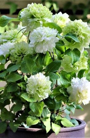 Íèçêîðîñëûé ñîðò ÿïîíñêîé ñåëåêöèè. Áóòîíû ñâåòëî-çåë¸íûå. Öâåòêè äèàìåòðîì 12-14 ñì, ìàõðîâûå, â íà÷àëå öâåòåíèÿ áåëûå ñî ñâåòëî-çåë¸íûìè è ðîçîâûìè îòòåíêàìè íà âåðõóøêàõ ëåïåñòêîâ, â ïîëíîì ðîñïóñêå öâåòêè áåëûå. Öâåò¸ò ñ ñåðåäèíû ìàÿ äî êîíöà èþíÿ íà ïðîøëîãîäíèõ ïîáåãàõ, ïî÷òè ñ ñàìîãî íèçà ðàñòåíèÿ. Òû÷èíêè êðåìîâûå, âèäíû òîëüêî ïðè ïîëíîì ðàñïóñêàíèè öâåòêà. Ëèñòüÿ îäèíàðíûå èëè òðîé÷àòûå, ò¸ìíî-çåë¸íûå. Öåïëÿåòñÿ çà îïîðû ëèñòîâûìè ÷åðåøêàìè. Ðàñò¸ò ìåäëåííî äî âûñîòû 100-120 ñì. Ðåêîìåíäóåòñÿ äëÿ âûðàùèâàíèÿ íà íèçêèõ îïîðàõ â ñàäó, à òàêæå â êîíòåéíåðàõ íà áàëêîíå è òåððàñå. Îñîáåííî êðàñèâî ñìîòðèòñÿ íà ò¸ìíîì ôîíå. Ëþáèò îñâåù¸ííûå ìåñòà ñ ïëîäîðîäíîé, âëàæíîé, äðåíèðîâàííîé ïî÷âîé. Ðåêîìåíäóåòñÿ ñëàáàÿ îáðåçêà: â ïåðâûé ãîä íà 30 ñì îò çåìëè íàä ñèëüíûìè áóòîíàìè, âî âòîðîé ˗ 70 ñì, à â ïîñëåäóþùèå ãîäû äî 100 ñì.
