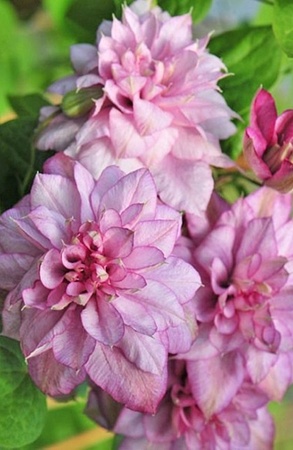 .Клематис Innocent Glance-пер.Невинный Взгляд Оригинатор : Szczepan Marczynski, Польша Год создания : 2014 красивый сорт с огромными махровыми цветами. Диаметр цветка 14-15 см, лепестки нежно-розовые с сиреневым румянцем на острых кончиках, количество лепестков у махровых цветков - 40-60. Махровые цветы образуются только на прошлогодних побегах. На побегах первого года цветы одиночные немахровые (6-7 чашелистников). Зацветает клематис Innocent Glance в мае, цветение длится до конца июля. Возможно повторное цветение в конце лета. Цветки появляются на высоте около метра от земли. Клематис Innocent Glance вырастает до двух метров. Морозостойкий сорт.Информация: Слабая обрезка