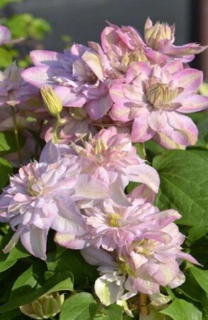 КлематисINNOCENT BLUSH-пер.НЕВИННЫЙ РУМЯНЕЦ Оригинатор : Szczepan Marczynski, Польша Год создания : 2012 За столь короткое время он смог покорить сердца миллионов садоводов. И это не удивительно, ведь обладает он красивейшим цветом, напоминающим окрас лотоса. Хрустально-розовый, лимонный, персиковый, зелёный- все эти краски и их оттенки Вы сможете разглядеть в одном цветке. Цветки по 10-12 см в диаметре, появляются с мая по июль и в конце августа.Что примечательно, старые побеги дают густомахровый цветок с более длинными нижними чашелистиками, а новым характерны простые бутоны с 6-ью слегка скрученными лепестками. Повторное цветение не столь обильное. Клематис Innocent Blush достаточно скромен в размерах, его побеги не превышают 2х м. С помощью него Вы сможете украсить перголу, ведущую в сад, замаскировать старую постройку и многое другое. Оттенить цвет помогут темные контрастные монотонные кустарники или же хвойные деревья.