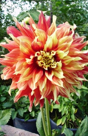 Bodacious в пер.Безрассудный Ярко-коралловый с жёлтыми штрихами и жёлтыми кончиками, h-100см, Ø-25см декоративный сорт, который был выведен в США автором Gitts.