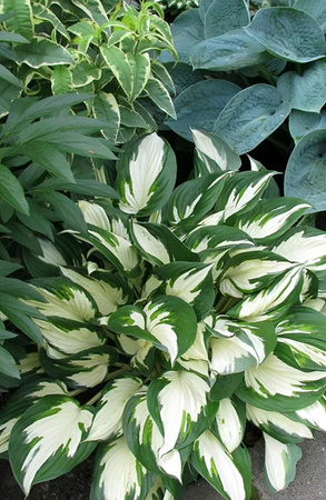 Восхитительные листья хосты Loyalist напоминают сказочные языки пламени, которые нежно развиваются под дуновение весеннего ветерка. Считается одним из лучших сортов селекции на протяжении последних 25 лет по всей стране благодаря контрастным оттенкам и неприхотливости в уходе.С приходом теплых деньков у хосты Лоялист появляются нежные перышки листьев, которые вскоре раскрываются и набирают насыщенный окрас и мясистость. Листья темно-зеленого оттенка с белоснежным центром, что придает эффектно контрастный вид. Форма листа слегка закручена, продолговатая, что придает кустам хосты Loyalist привлекательный, задорный вид. Когда разрастется куст появляется крепкий цветонос, на котором распускаются очаровательные цветы по форме напоминающие лилии, лавандового оттенка с тонким, нежным ароматом.Славится хоста Лоялист тем, что очень быстро нарастает и приобретает шикарный декоративный вид. Высота хосты этого сорта 45 см, ширина куста 60 см, высота цветоноса 50 см. Эффектно смотрится в одиночной посадке, а также и в групповой комбинированной. Очень эффектно смотрится хоста Лоялист в группе с однотонными хостами-гигантами.