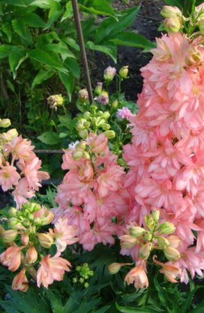 Дельфиниум Принцесса Каролина (Delphinium 'Princess Caroline')Изысканный и благородный сорт, чье название говорит само за себя. Эта аристократка сада покоряет необыкновенно красивыми и редкими по окраске цветами — насыщенного лососево-розового или персиково-розового оттенка. Высокие, стройные соцветия-свечи выглядят по-королевски эффектно и станут самой яркой и запоминающейся вертикалью в вашем саду. Идеальный выбор для тех, кто ищет изюминку для своей коллекции и хочет создать элегантную, романтическую атмосферу.Высота растения 180 см, цветки сильно махровые, диаметром 6-8 см