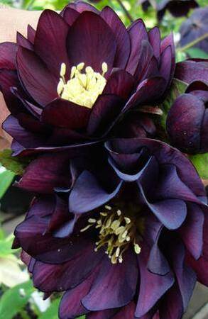 Сорт морозника Дабл Эллен Пурпур (Double Ellen Purple) отличается махровыми цветами очень темного пурпурно-фиолетового цвета. Травянистое, многолетнее растение любит полутень, хорошо увлажненную, удобренную, дренированную почву нейтральной среды. Может расти на одном месте до 55 лет и не требовать пересадки. При высадке этого растения на солнечном участке его необходимо обильно поливать. Зимнестойкое до -34°С, не требующее специального ухода. Зацветает с началом весны, вечнозеленая листва радует глаз весь год.