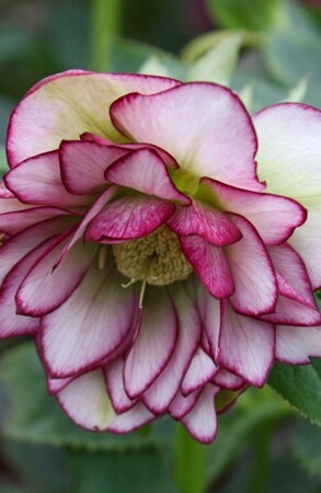 Морозник восточный Дабл Эллен Пикоти - вечнозеленый многолетник, высотой 30-40 см, образующий красивые зеленые группы. В начале весны на нем появляются цветки до 5 см в диаметре, темно-зеленые листья появляются позднее. Цветок морозника состоит из крупной чашечки, а лепестки похожи на маленькие толстые воронки. Цветки густо махровые, кремово-зеленоватые с бордовым крапом и бордовой окантовкой лепестков. Цветение апрель-май.Предпочитают полутень среди деревьев и кустарников, но хорошо выдерживает и не очень глухую тень, и солнце при регулярном поливе. Любит тяжелую глинистую почву, глубоко обработанную и богатую перегноем. Долговечное растение, на одном месте может расти десятки лет.Хороший вариант для альпинария и каменистого сада. Высаженные под пологом деревьев, со временем морозники образуют большие (до 50–60 цветочных стеблей) куртины, которые с начала апреля до поздней осени украшают сад. Цветки долго стоят в срезке.
